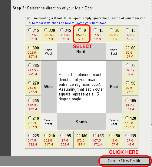 - Step 3: Select the main door direction (click here to learn more on now to determine your main door direcion)